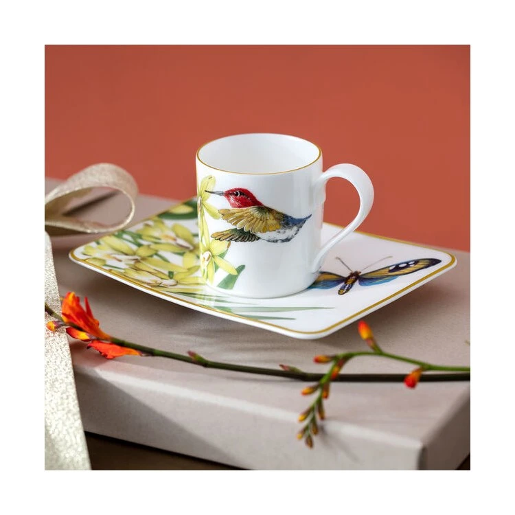 Bring a tropical paradise to your tabletop with the exotic bone china collection Amazonia. With lovely butterflies, orchids and plant life that are inspired by the Amazon, this collection is a truly beautiful stand-out. Precious gold trim adds a hint of luxury. Hand washing is recommended. Villeroy & Boch has been creating stunning tableware collections since 1748. Manufactured with pride and precision in Villeroy & Boch’s German facility.