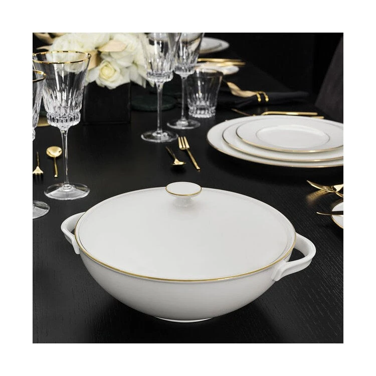 The Anmut Gold collection offers an understated, yet striking mid century design. Pure white premium bone porcelain is decorated with precious hand applied gold. Distinctive and luxurious, the Anmut Gold collection is part of the Signature series. Villeroy & Boch has been creating sophisticated tableware since 1748.