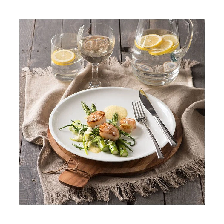 Unique craftsmanship and an exciting mix of modern materials make the award-winning Artesano particularly fascinating. Inspired by a farm-to-table philosophy, this casual dinnerware adds a rustic touch to your culinary creations. Enjoy the clean, modern wide-edge plates and bowls, and add modern style to your table with serving accessories from sustainable acacia wood, cork, glass and slate. Create a sophisticated stylish presentation that is both tasteful and grounded by the principles of exceptional design. Earn yourself a little more leisure time with dishwasher safe durability and microwave safe convenience. High-quality German-made porcelain provides upscale appeal and lasting durability. Villeroy & Boch has been a premium manufacturer of fine porcelain, glassware, flatware, and more since 1748; This is proudly manufactured in Villeroy & Boch’s German factory.