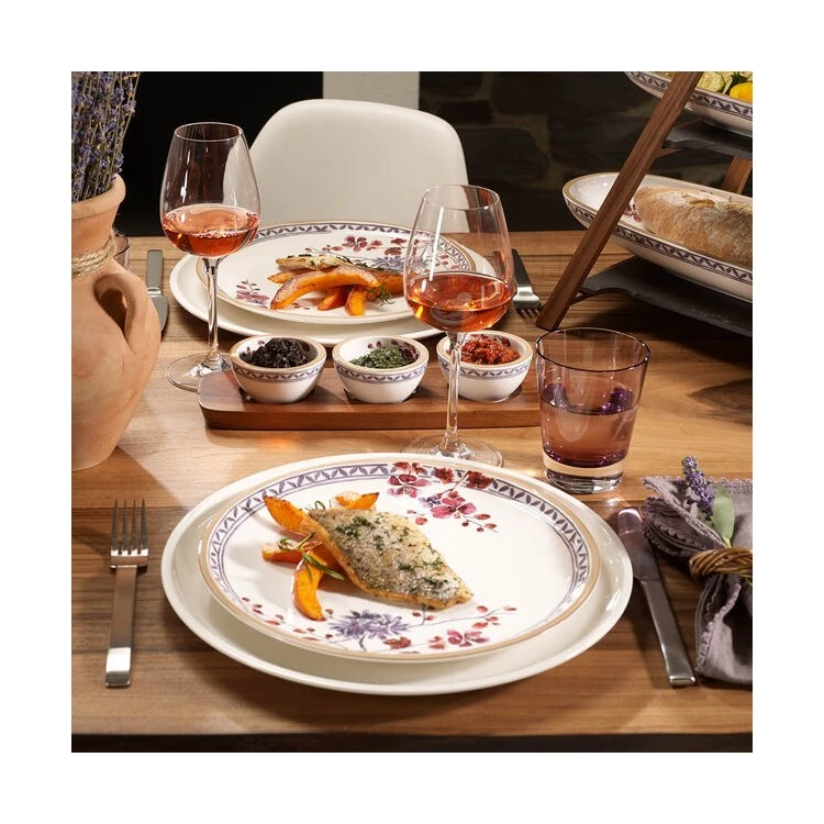 Unique craftsmanship and an exciting mix of modern materials make the award-winning Artesano particularly fascinating. The floral design recalls the French countryside in Provence. This casual dinnerware adds a rustic touch to your culinary creations. Create a sophisticated stylish presentation that is both tasteful and grounded by the principles of exceptional design. Earn yourself a little more leisure time with dishwasher safe durability and microwave safe convenience. High-quality German-made porcelain provides upscale appeal and lasting durability. Villeroy & Boch has been a premium manufacturer of fine porcelain, glassware, flatware, and more since 1748; This is proudly manufactured in Villeroy & Boch’s German factory.