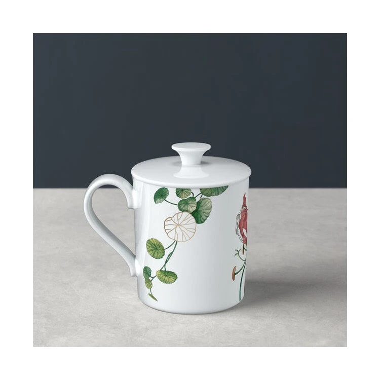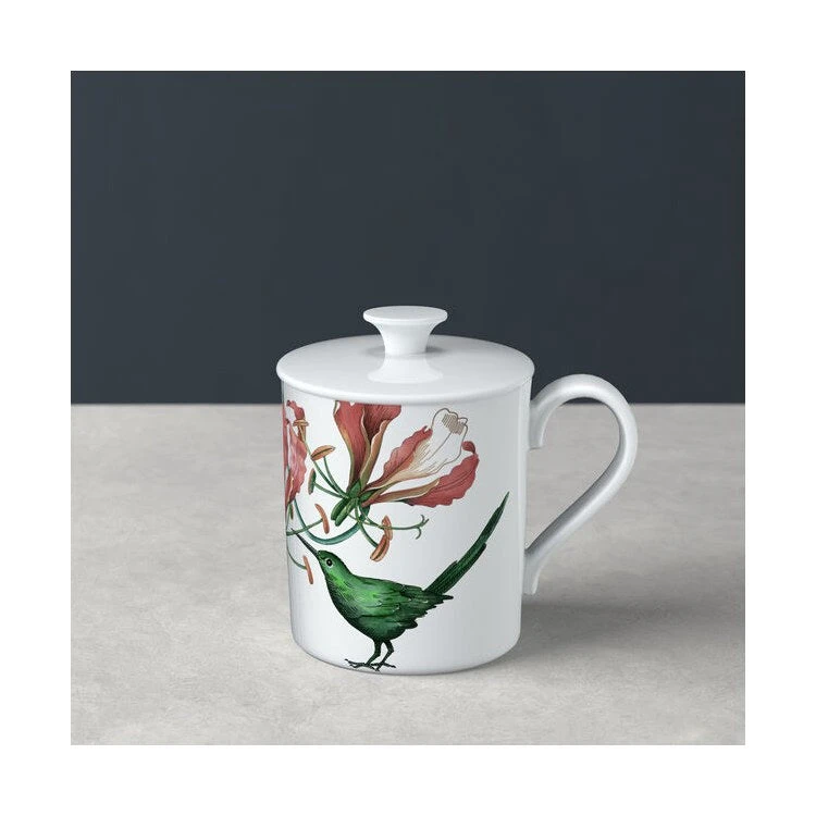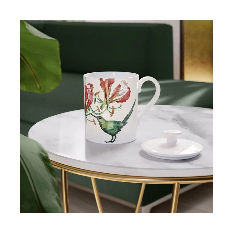 Avarua transforms the dining table into an imaginative paradise where flora and fauna can unfold their beauty. The collection features intricate flowers, leaves and birds. Premium Bone Porcelain has been designed with elegant red flowers of the Gloriosa superba, mangroves and strelitzia leaves in various greens surrounded by color-coordinated hummingbirds. 22K gold detailing accents the collection and provides a three dimensional effect. Dishwasher safe.