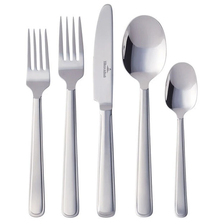 Celeste stainless steel cutlery includes a timeless style that matches every table decoration. Enjoy quality and style with every bite. This 60-piece flatware set consists of twelve dinner spoons, twelve dinner forks, twelve dinner knives, twelve dessert forks, and twelve teaspoons.