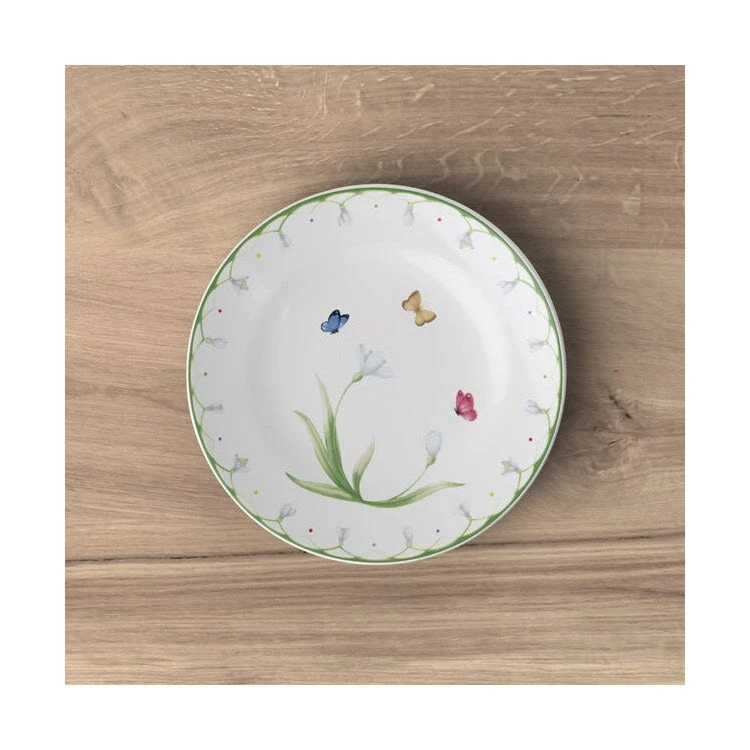 Set a cheerful table with this delightful spring inspired pattern. Villeroy and Boch’s Colorful Spring collection is decorated with charming snowdrops and fanciful butterflies. Villeroy and Boch has been creating beautiful tableware since 1748. This premium porcelain collection is dishwasher and microwave safe.