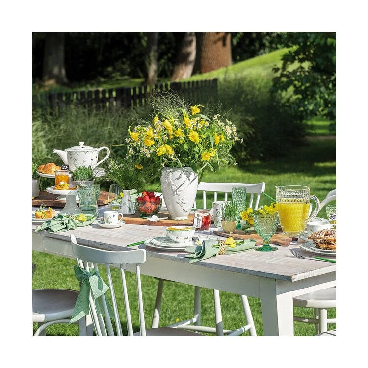 Set a cheerful table with this delightful spring inspired pattern. Villeroy and Boch’s Colorful Spring collection is decorated with charming snowdrops and fanciful butterflies. Villeroy and Boch has been creating beautiful tableware since 1748. This premium porcelain collection is dishwasher and microwave safe.