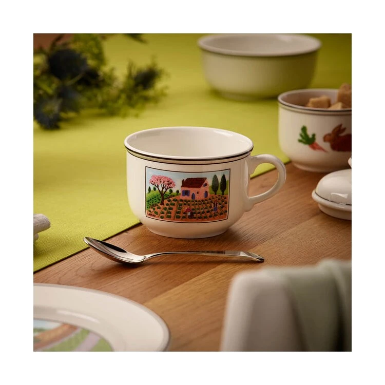 The Design Naif collection is truly unique. The pattern was designed by the Corsican artist Gerard Laplau who was critical in establishing “naive” as a globally relevant art form. The lovingly decorated pieces adored by children & collectors worldwide feature family and village vignettes with occasional biblical motifs. This charming premium porcelain collection is perfect for daily family use at breakfast or for an afternoon tea. Earn yourself a little more leisure time with dishwasher safe durability and microwave safe convenience. High-quality German-made porcelain provides upscale appeal and lasting durability. Villeroy & Boch has been a premium manufacturer of fine porcelain, glassware, flatware, and more since 1748; This is proudly manufactured in Villeroy & Boch’s German factory.