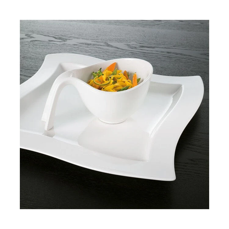 Each Flow piece captivates the eye with its sensuous lines, showing just how wonderfully light and flowing contemporary porcelain design can be, and offering a wealth of possibilities for stunning table settings. Flow captures the spirit of today’s fashion – flowing lines, surprising shapes and exciting imaginative detail. A completely new design and a totally new perspective. Earn yourself a little more leisure time with dishwasher safe durability and microwave safe convenience. High-quality German-made porcelain provides upscale appeal and lasting durability. Villeroy & Boch has been a premium manufacturer of fine porcelain, glassware, flatware, and more since 1748; This is proudly manufactured in Villeroy & Boch’s German factory.