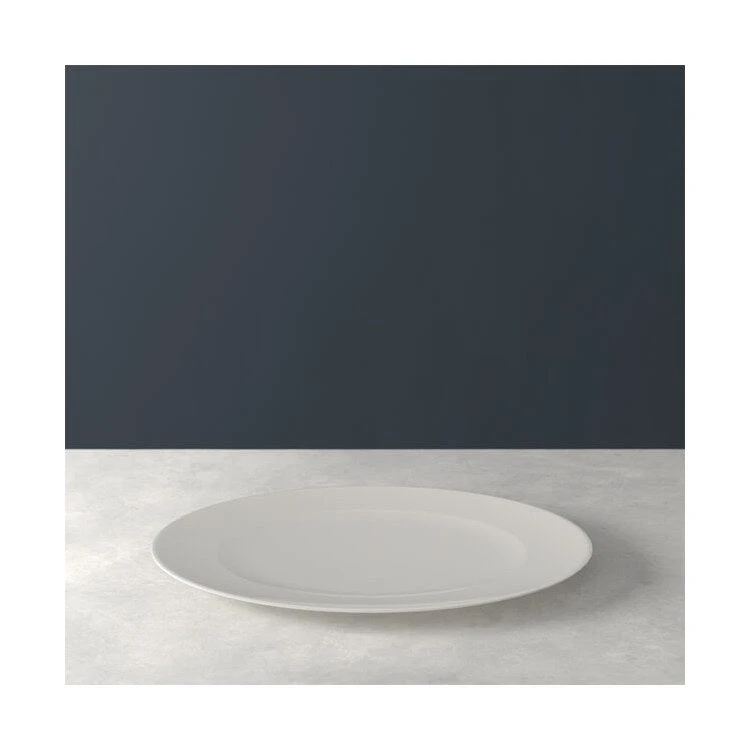 With its creamy white color and contemporary form, Villeroy & Boch’s For Me coupe-shaped dinner plate elevates mealtime while blending seamlessly with any pattern