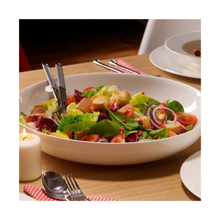 With its creamy white color and contemporary form, Villeroy & Boch’s For Me coupe-shaped dinner plate elevates mealtime while blending seamlessly with any pattern