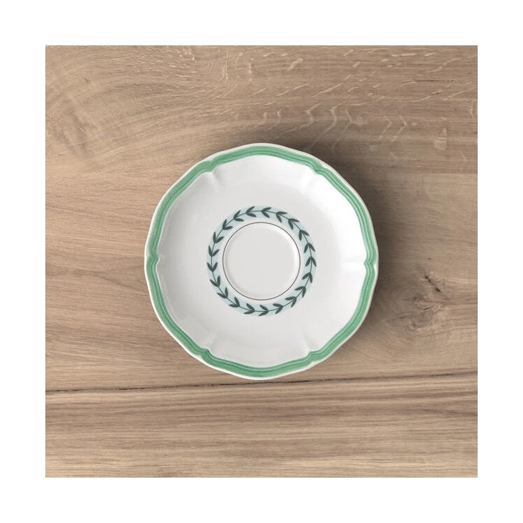 Originally designed in 1997, the French Garden collection brings a country cottage charm into your home. The simple, yet sophisticated, Green Line works well alone as well as in combination with the existing French Garden patterns. The Green Line features the well-known scalloped edges and raised curves from the original collection. Premium porcelain is durable, dishwasher and microwave safe. Villeroy & Boch has been creating beautiful tableware since 1748. This product is proudly made in Germany.
