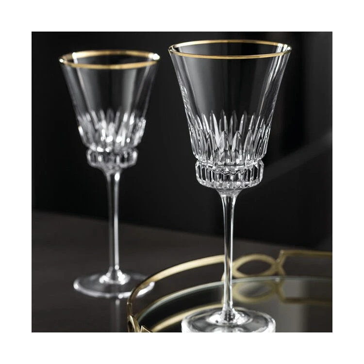 Villeroy & Boch’s Grand Royal glassware collection includes a striking selection of wine glasses, champagne flutes and cocktail glasses that are finely crafted of lead=free, cut crystal glass. Trimmed in precious gold, this luxuriously carved glassware adds glamour to any tabletop it adorns. Lead Free. Dishwasher safe.