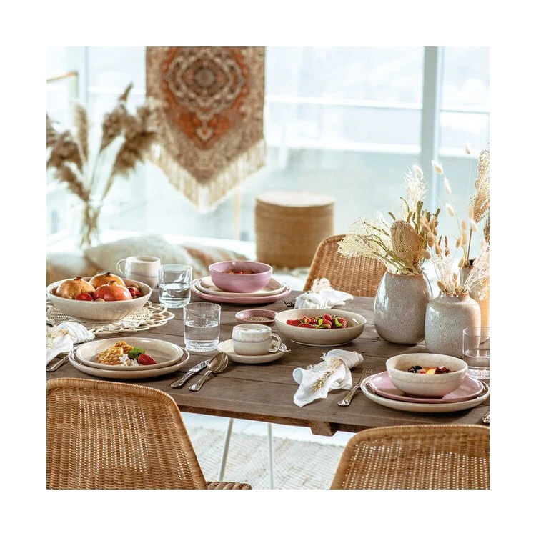 Pottery takes on a modern makeover with the Lave Collection by Villeroy & Boch. During manufacturing the hand applied glaze takes on different tones and textures. Each piece is a unique work of art. The generously proportioned pieces are slightly asymmetrical, adding to the craftsman appeal. Made in Portugal. Villeroy & Boch has been creating sophisticated tableware since 1748.