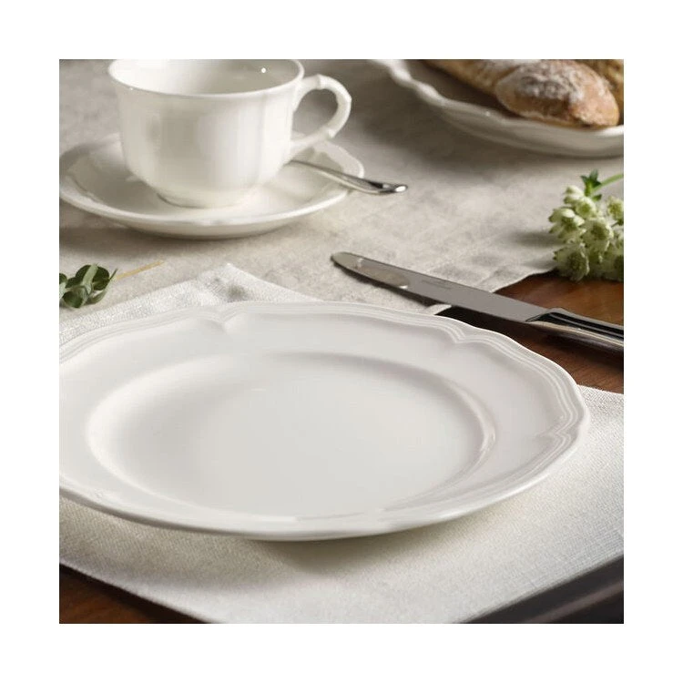 The Manoir collection from Villeroy & Boch offers a creamy white body with gentle scalloped shape. One of the first shapes ever created by Villeroy & Boch in the 1700s, this collection proves that good design is timeless. Earn yourself a little more leisure time with dishwasher safe durability and microwave safe convenience. High-quality German-made porcelain provides upscale appeal and lasting durability. Villeroy & Boch has been a premium manufacturer of fine porcelain, glassware, flatware, and more since 1748; This is proudly manufactured in Villeroy & Boch’s Germany factory.