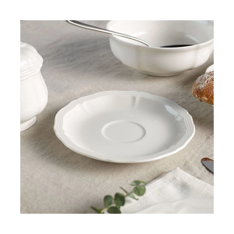 The Manoir collection from Villeroy & Boch offers a creamy white body with gentle scalloped shape. One of the first shapes ever created by Villeroy & Boch in the 1700s, this collection proves that good design is timeless. Earn yourself a little more leisure time with dishwasher safe durability and microwave safe convenience. High-quality German-made porcelain provides upscale appeal and lasting durability. Villeroy & Boch has been a premium manufacturer of fine porcelain, glassware, flatware, and more since 1748; This is proudly manufactured in Villeroy & Boch’s Germany factory.