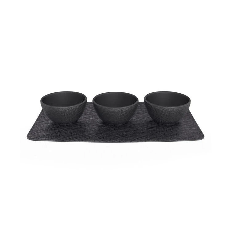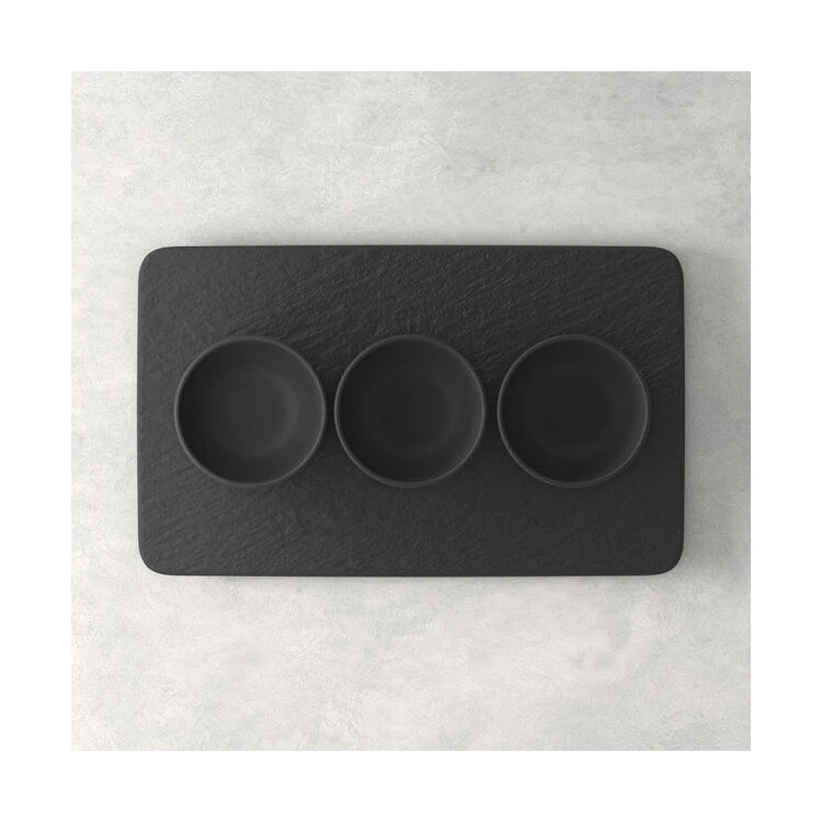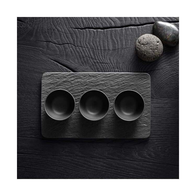 The Manufacture collection from Villeroy & Boch combines premium porcelain with high-quality craftsmanship inspired by natural materials with strong color accents. Manufacture Rock and Rock Blanc offer a look that resembles natural slate, thanks to the light glaze that’s added over the porcelain to give the pieces that rustic, from-nature look. The color of Manufacture Rock resembles natural slate, while Rock Blanc offers pieces in a crisp white. Dishwasher and Microwave safe