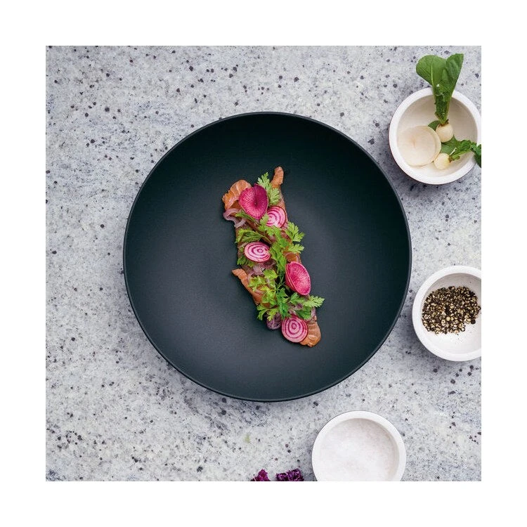 The Manufacture collection from Villeroy & Boch combines premium porcelain with high-quality craftsmanship inspired by natural materials with strong color accents. Manufacture Rock and Rock Blanc offer a look that resembles natural slate, thanks to the light glaze that’s added over the porcelain to give the pieces that rustic, from-nature look. The color of Manufacture Rock resembles natural slate, while Rock Blanc offers pieces in a crisp white. Dishwasher and Microwave safe