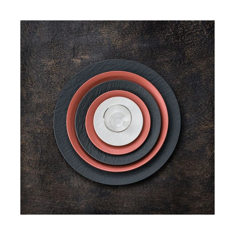The Manufacture collection from Villeroy & Boch combines premium porcelain with high-quality craftsmanship inspired by natural materials with strong color accents. Manufacture Rock and Rock Blanc offer a look that resembles natural slate, thanks to the light glaze that’s added over the porcelain to give the pieces that rustic, from-nature look. The color of Manufacture Rock resembles natural slate, while Rock Blanc offers pieces in a crisp white. Dishwasher and Microwave safe