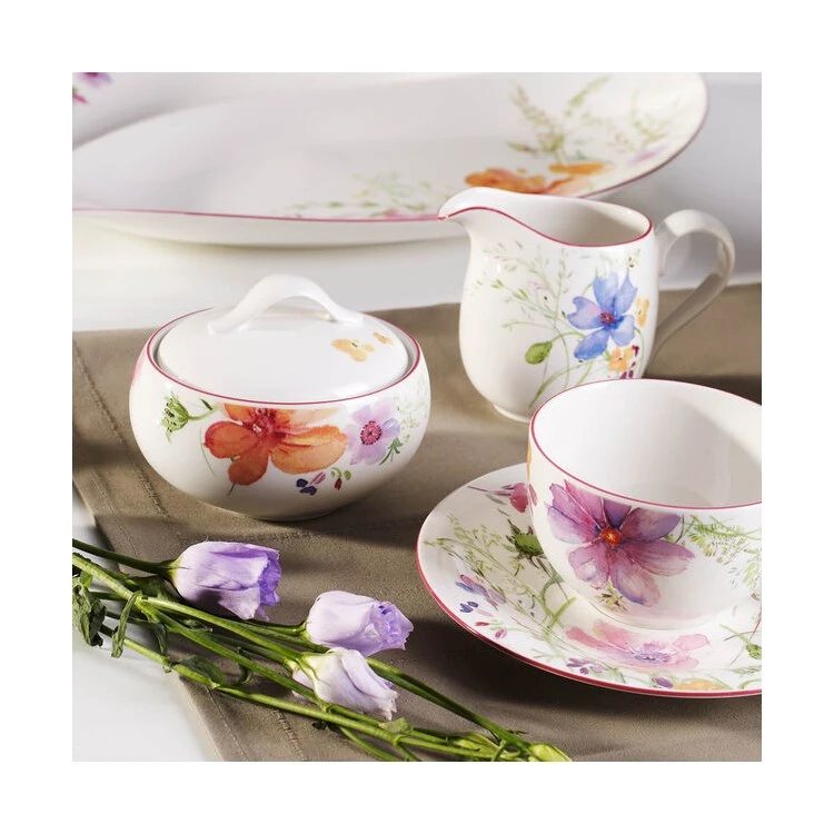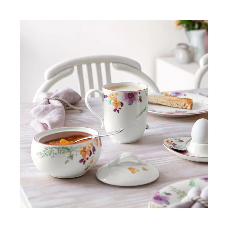 The Mariefleur collection brings a soft, feminine elegance to tabletops with its whimsical shapes and handpainted floral patterns. Inspired by Monet’s own lush garden in Giverny, France, this collection offers eye-catching flowers in vibrant springtime colors. Earn yourself a little more leisure time with dishwasher safe durability and microwave safe convenience. High-quality German-made porcelain provides upscale appeal and lasting durability. Villeroy & Boch has been a premium manufacturer of fine porcelain, glassware, flatware, and more since 1748; This is proudly manufactured in Villeroy & Boch’s Germany factory.