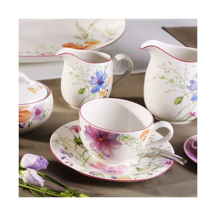 The Mariefleur collection brings a soft, feminine elegance to tabletops with its whimsical shapes and handpainted floral patterns. Inspired by Monet’s own lush garden in Giverny, France, this collection offers eye-catching flowers in vibrant springtime colors. Earn yourself a little more leisure time with dishwasher safe durability and microwave safe convenience. High-quality German-made porcelain provides upscale appeal and lasting durability. Villeroy & Boch has been a premium manufacturer of fine porcelain, glassware, flatware, and more since 1748; This is proudly manufactured in Villeroy & Boch’s Germany factory.