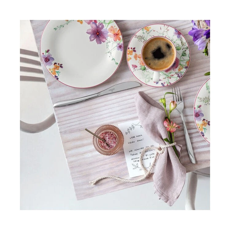 The Mariefleur collection brings a soft, feminine elegance to tabletops with its whimsical shapes and handpainted floral patterns. Inspired by Monet’s own lush garden in Giverny, France, this collection offers eye-catching flowers in vibrant springtime colors. Earn yourself a little more leisure time with dishwasher safe durability and microwave safe convenience. High-quality German-made porcelain provides upscale appeal and lasting durability. Villeroy & Boch has been a premium manufacturer of fine porcelain, glassware, flatware, and more since 1748; This is proudly manufactured in Villeroy & Boch’s Germany factory.