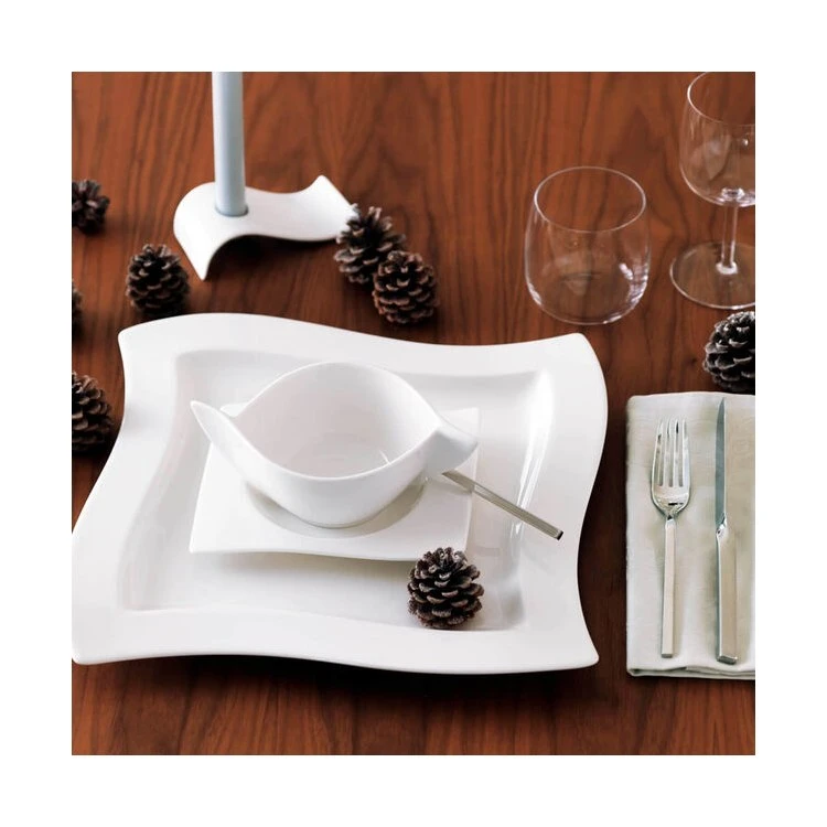 Contemporary chic- The New Wave collection by Villeroy & Boch adds fluidity and style to your table with clean lines and original eye-catching designs. Made in Germany from high-quality porcelain, the unique contemporary collection will elevate your special occasions and everyday dining. The four piece place setting includes one each: dinner plate, salad plate, rice bowl and mug. Earn yourself a little more leisure time with dishwasher safe durability and microwave safe convenience. High-quality German-made porcelain provides upscale appeal and lasting durability. Villeroy & Boch has been a premium manufacturer of fine porcelain, glassware, flatware, and more since 1748.