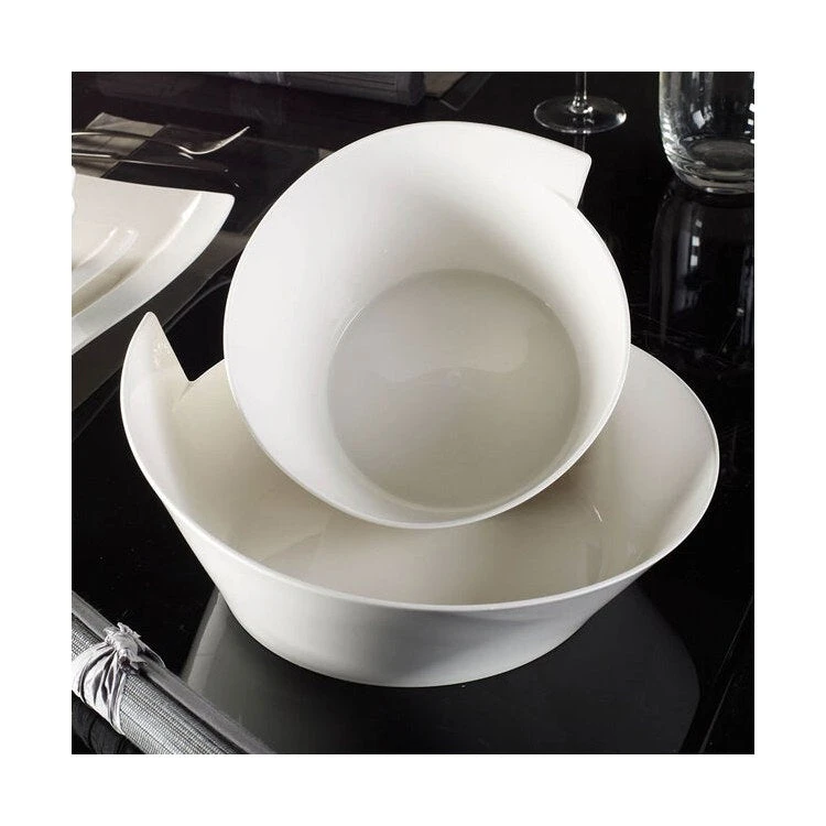Contemporary chic- The New Wave collection by Villeroy & Boch adds fluidity and style to your table with clean lines and original eye-catching designs. Made in Germany from high-quality porcelain, the unique contemporary collection will elevate your special occasions and everyday dining. The four piece place setting includes one each: dinner plate, salad plate, rice bowl and mug. Earn yourself a little more leisure time with dishwasher safe durability and microwave safe convenience. High-quality German-made porcelain provides upscale appeal and lasting durability. Villeroy & Boch has been a premium manufacturer of fine porcelain, glassware, flatware, and more since 1748.