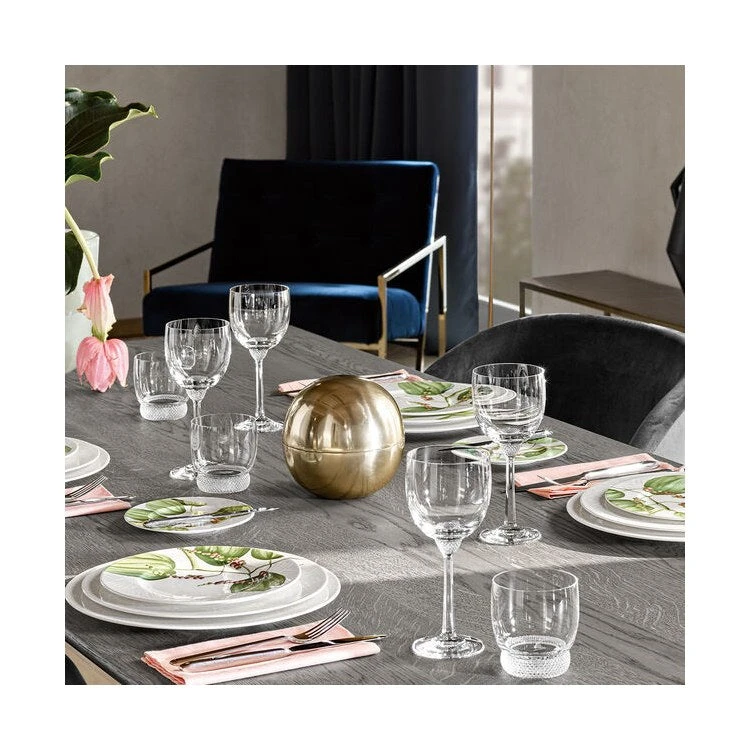 Octavie crystal glassware is inspired by Octavie Villeroy, whose wedding to Eugen von Boch in 1842, strengthened the alliance between the Boch and Villeroy families. Octavie stemware features elegant lead-free crystal glasses and stems adorned with sophisticated diamond-cut detail. Elevate your drink enjoyment to new heights and be a part of the European history with the magnificent Octavie crystal collection. Dishwasher safe.