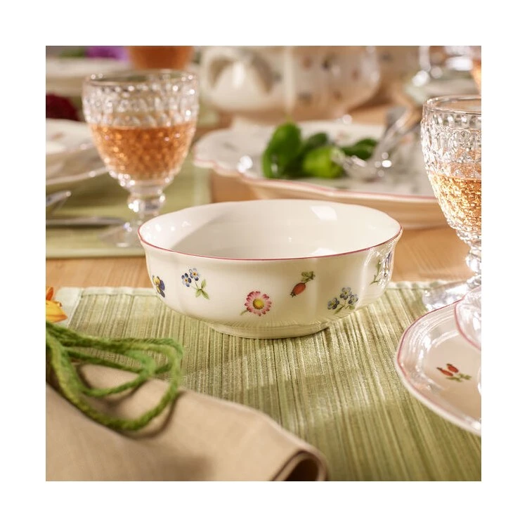 The Petite Fleur dinnerware collection by Villeroy & Boch mixes classic shapes with scalloped edges and a delicate floral pattern for a fresh, feminine and casually elegant vibe. Create a porcelain garden upon your tabletop with this charming floral dinnerware. Earn yourself a little more leisure time with dishwasher safe durability and microwave safe convenience. High-quality German-made porcelain provides upscale appeal and lasting durability. Villeroy & Boch has been a premium manufacturer of fine porcelain, glassware, flatware, and more since 1748; This is proudly manufactured in Villeroy & Boch’s German factory.