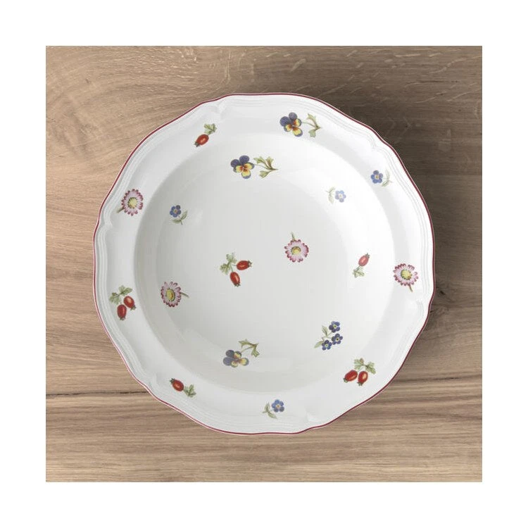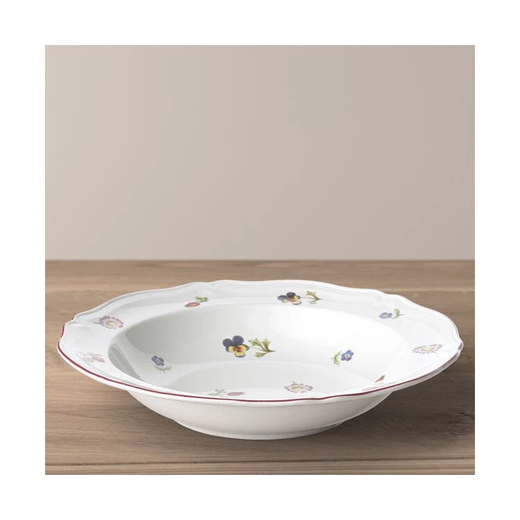 The Petite Fleur dinnerware collection by Villeroy & Boch mixes classic shapes with scalloped edges and a delicate floral pattern for a fresh, feminine and casually elegant vibe. Create a porcelain garden upon your tabletop with this charming floral dinnerware. Earn yourself a little more leisure time with dishwasher safe durability and microwave safe convenience. High-quality German-made porcelain provides upscale appeal and lasting durability. Villeroy & Boch has been a premium manufacturer of fine porcelain, glassware, flatware, and more since 1748; This is proudly manufactured in Villeroy & Boch’s German factory.