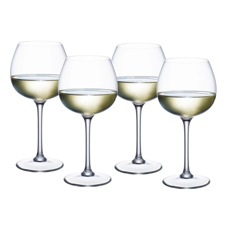 Specially crafted to bring out the full flavor of white wines, this set of four crystal glass wine goblets is perfect for sipping your favorite vintage. Enjoy elegant shapes and unrivaled crystal brilliance that will not fade, even after heavy use and frequent dishwashing. Scratch and cloud resistant.
